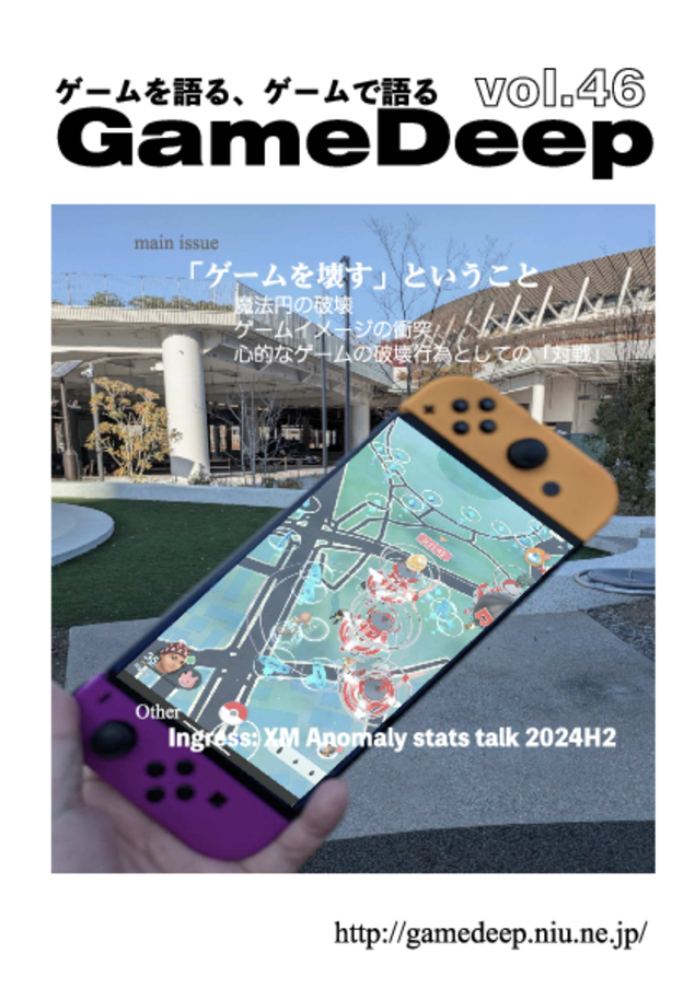 GameDeep vol.46$1$1https://schema.org/InStockusd中田吉法中田吉法「ゲームを壊す」ということ 魔法円の破壊 ゲームイメージの衝突 心的なゲームの破壊行為としての「対戦」 Ingress: XM Anomaly stats talk 2024H2Buy thisPagesSize1.28 MBLength26 pagesAdd to wishlist New wishlistShareShare on XShare on Facebook Copy linkCopy product URL